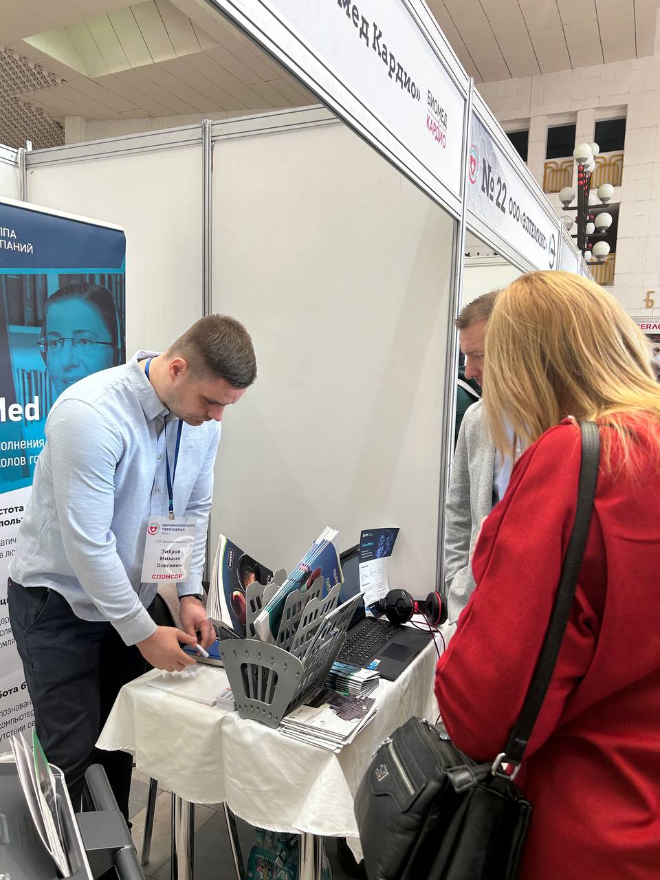 Для участников очных мероприятий была предусмотрена ручная регистрация на стойке в начале и конце каждой конференции, включавшая заполнение анкеты и получение персональных Q-кодов для последующей сверки присутствия и выдачи сертификатов НМО.